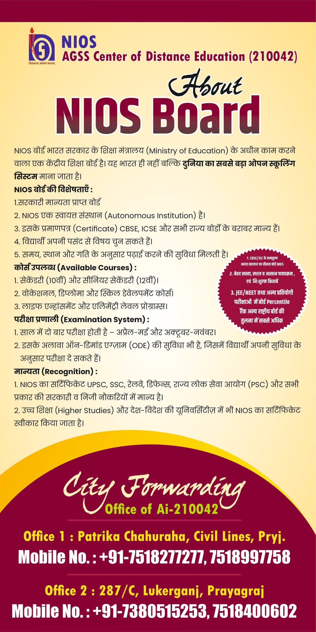 NIOS Vision Point Prayagraj offers a flexible and government-recognized education system for students who want to complete their 10th or 12th without…